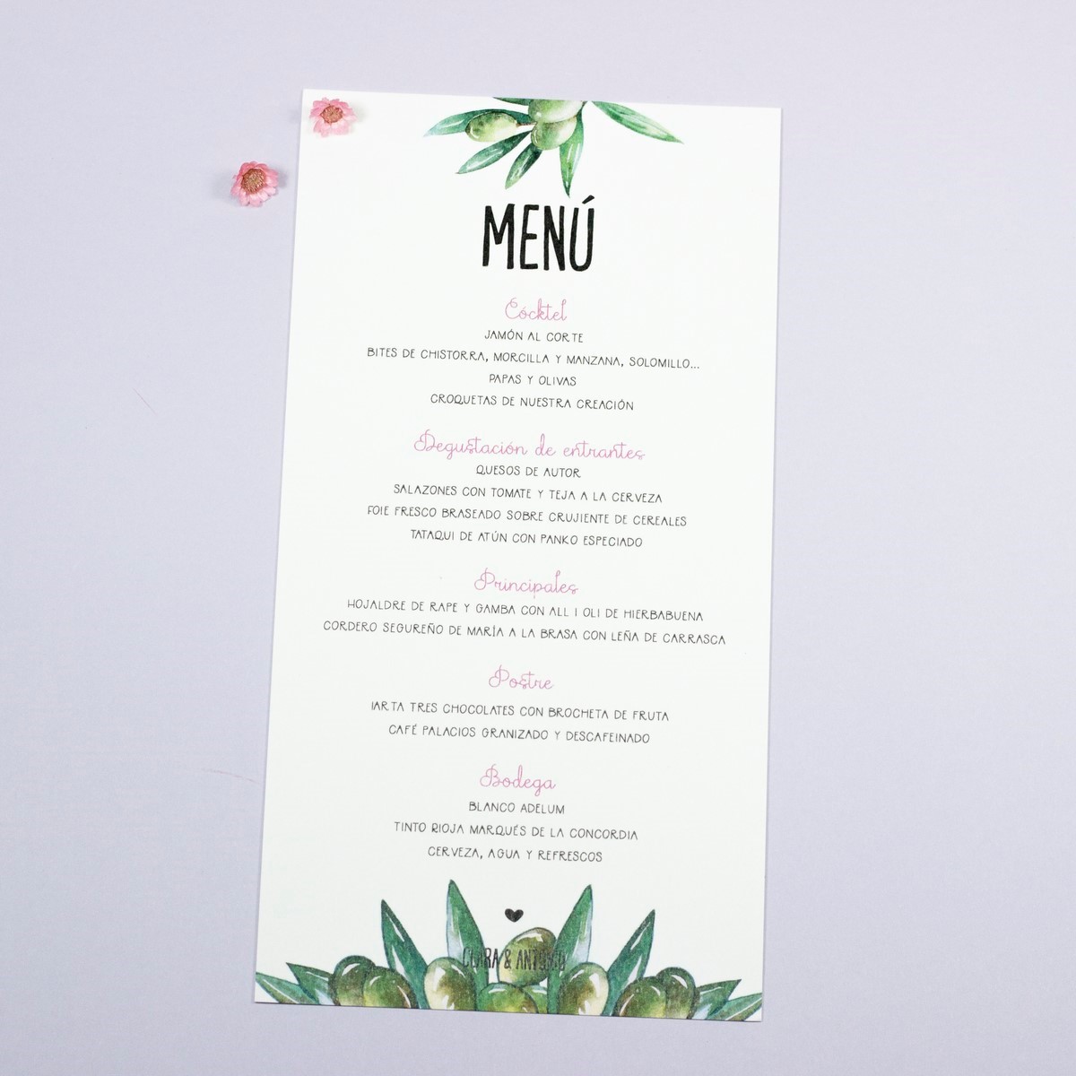 • Diseño y maquetación de la minuta con vuestro menú de boda.
